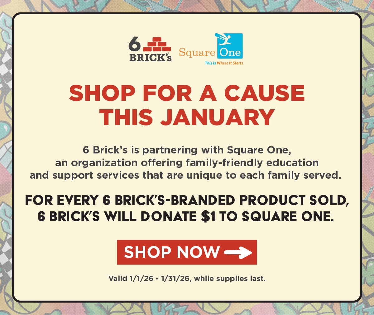 This January, 6 Brick’s is proud to partner with Square One, an organization providing family-friendly education and support services tailored to each family they serve. For every 6 Brick’s–branded product sold, 6 Brick’s will donate $1 to Square One. Join us in supporting a meaningful local cause while you shop.
